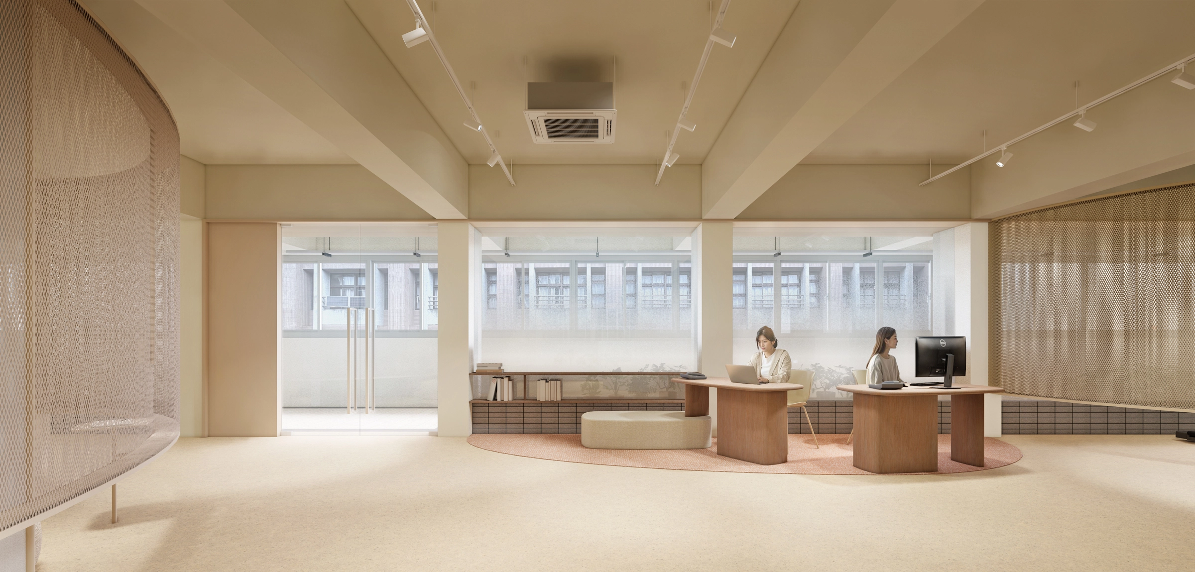 我們將諮商空間理解為一層層的皮層。外層是半透明的屏障,像霧氣般輕薄,既能被看見,也能保有安定的距離;內層則是漸層玻璃所圍合的房間,一個光影柔化的容器,承載著深度對話與傾聽。這種漸進的過渡,正如心理歷程的轉換——從被注意到能安心被理解。