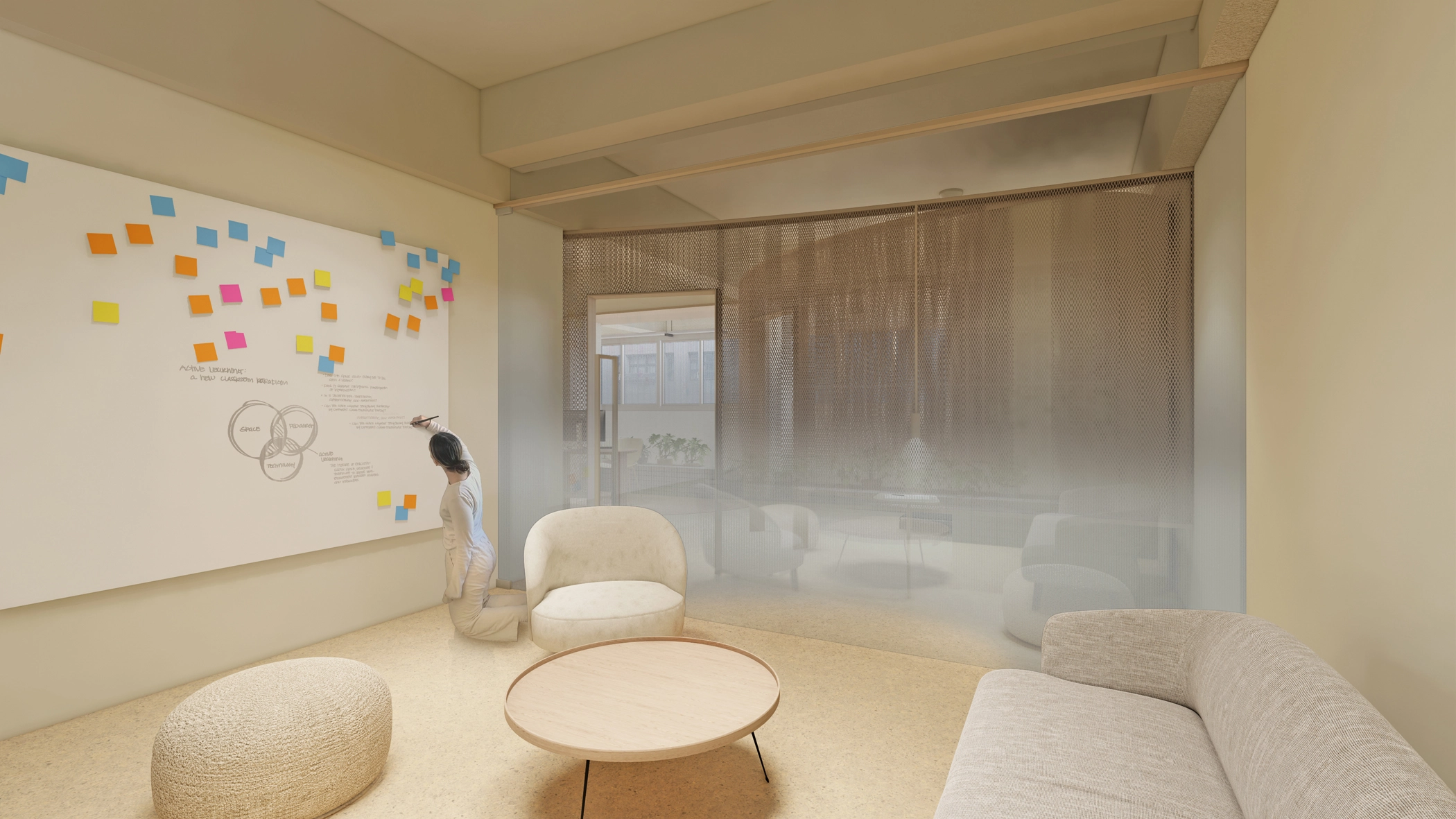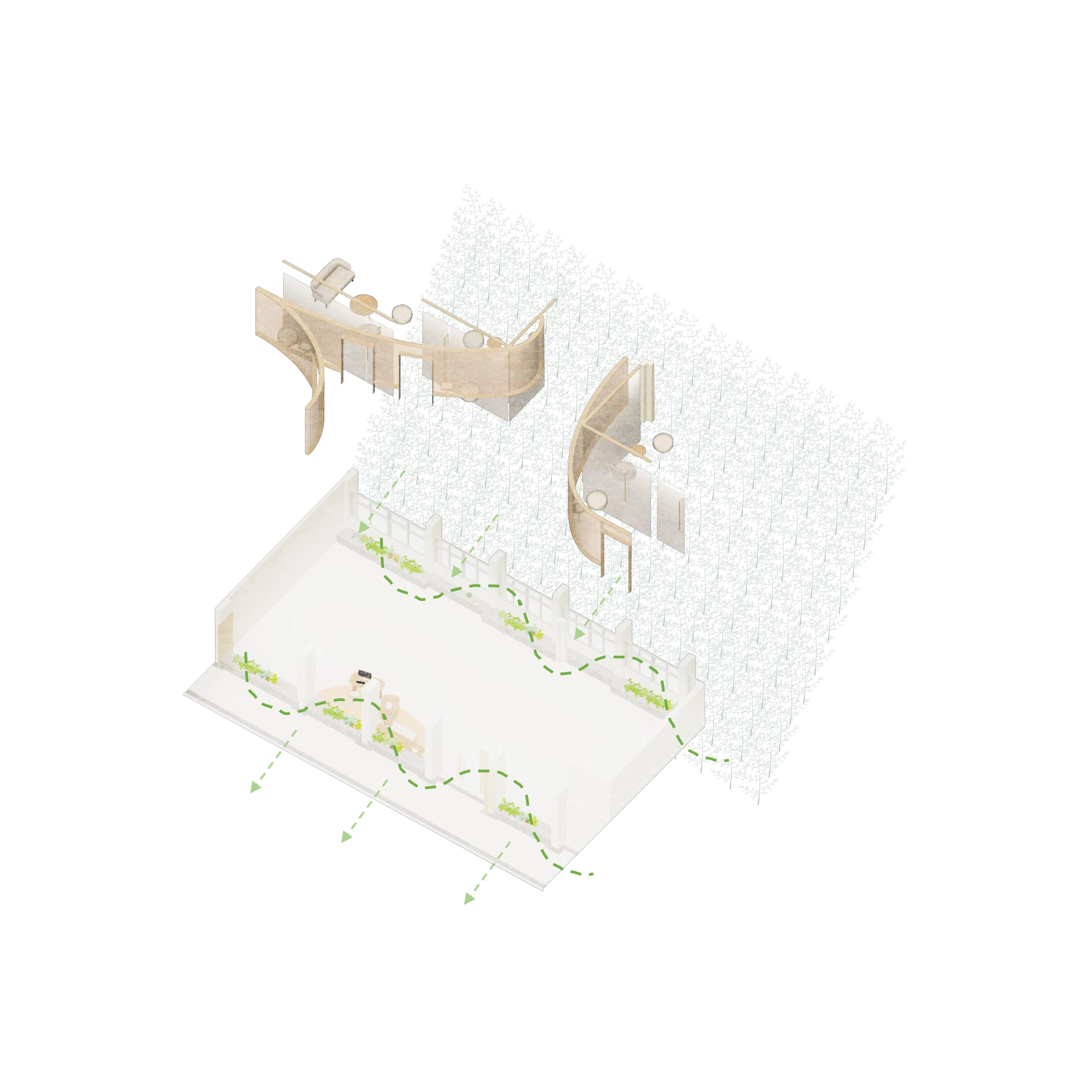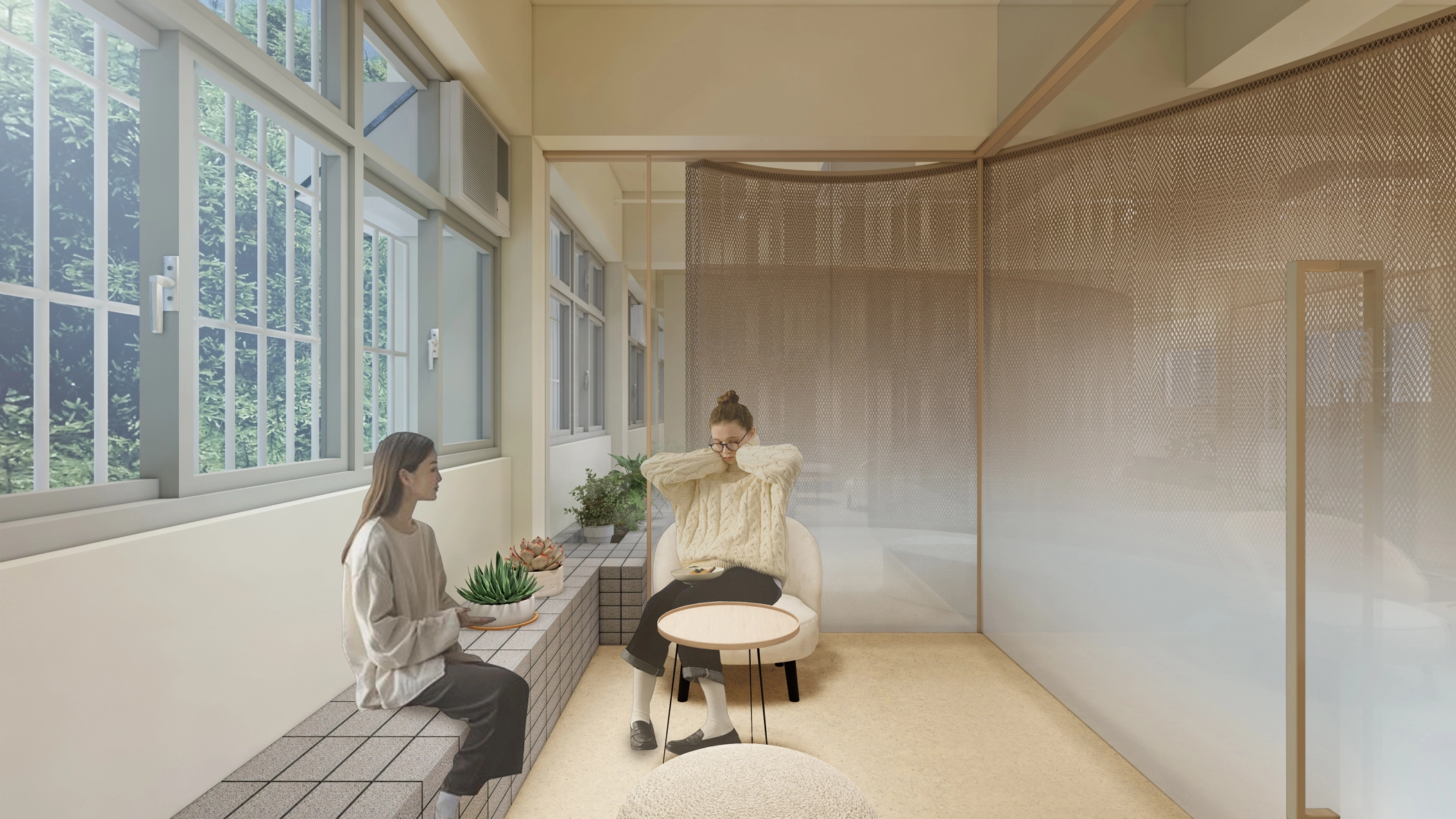 We imagined the counseling center not as a sterile clinic or an impersonal office, but as a constant presence in the background. It does not need to announce itself. Instead, it stays quietly, like white noise—masking the abrupt, filling the void, offering calm and focus, always there when you choose to lean on it.